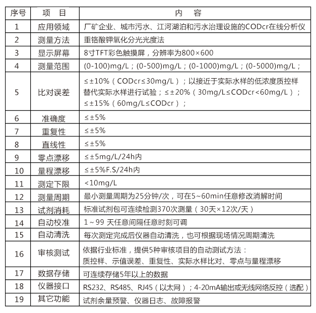 化學(xué)需氧量(Chemical Oxygen Demand,簡稱COD)是指在強(qiáng)酸并加熱條件下,用重鉻酸鉀氧化處理水樣時(shí)所消耗氧化劑的量,以氧的mg/L表示。它是綜合評價(jià)水體污染程度的重要指標(biāo),是水質(zhì)監(jiān)測的重要水質(zhì)參數(shù),是我國實(shí)施總量排放控制的重要指標(biāo)之一,同時(shí)也是河流和工業(yè)廢水的研究及污水處理廠的處理效果的一個(gè)重要而相對易得的參數(shù)。