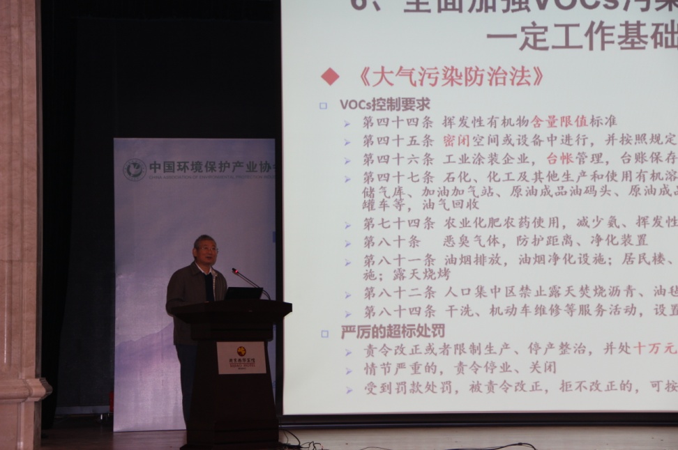 環(huán)保部大氣司固定源處嚴(yán)剛處長(zhǎng)就目前我國(guó)VOCs污染防治的政策法規(guī)和管理要求進(jìn)行了闡述。